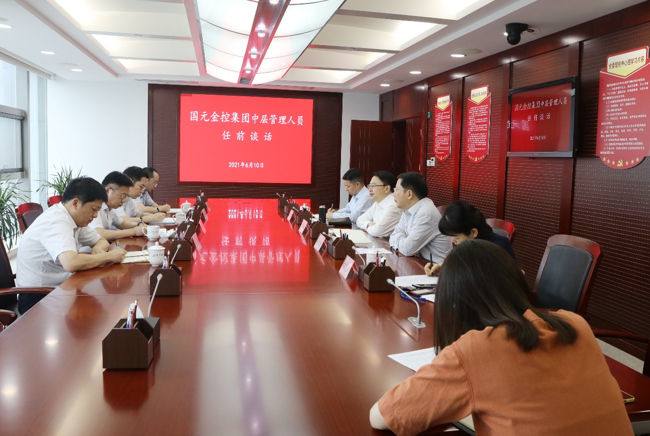 6月10日下午,国元金控集团党委举行新任集团旗下成员公司领导班子成员集体谈话,集团党委书记、董事长方旭出席并讲话,集团党委副书记姚立斌,集团党委委员、省纪委监委驻集团纪检监察组组长夏瑜保,团组织人事部主要负责同志参加会议。